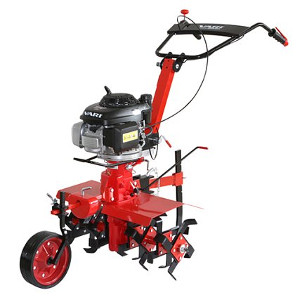 Cena bez DPH Půjčovné 1-4 hod 250,- Kč Půjčovné 1 den 500,- Kč Půjčovné 2-7 dní 450,- Kč Půjčovné 8-30 dní 400,- Kč Půjčovné nad 30 dní 350,- Kč Profesionální třírychlostní rotavátor se zpátečkou je výborným pomocníkem pro přípravu půdy před sázením a setím. Je postaven na malotraktoru VARI IV, kdy jsou místo tažné nápravy nasazeny kypřicí nože. Rotavátor pohání motor HONDA GCV 160. Kypřič rotační VARI IV má tři rychlosti vpřed, neutrál a 1 rychlost vzad. Řazení rychlostí se provádí vždy za klidu stroje. Součástí této sestavy je závěs Z-01 pro připojení pasivního příslušenství nebo radličky, kypřicí ústrojí, bezpečnostní kryty kypřicího ústrojí, přední vodicí kolo VK-Global (transportní kolo) a nosič radličky s radličkou N-3, která určuje rychlost a hloubku kultivace. Tento stroj je vhodný pro profesionály i pro zahrádkáře. Hmotnost 103 kg Motor HONDA GCV 160 Objem motoru 160 m3 Výkon motoru 4,1 kW Objem nádrže / palivo 1,1 / benzin Šíře záběru 80 cm Nastavení řidítek výškově i šířkově Počet rychlostí 3+1R