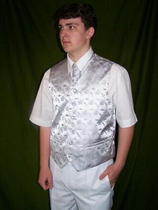 Vesta s regatou šedá. Velikost : M-šíře vesty přes bříško 102 cm. Vestu možno zmenšit o 15 cm pomocí gumy.