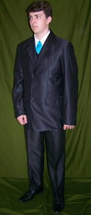 Pánský oblek černý lesklý. velikost :46 největší možnost pasu 86 cm, velikost :48 největší možnost pasu 88 cm, velikost :50 největší možnost pasu 95 cm, velikost :52 největší možnost pasu 97cm, velikost :54 největší možnost pasu 100 cm Součástí je vesta stejného materiálu. Pas a délku upravíme na vás.