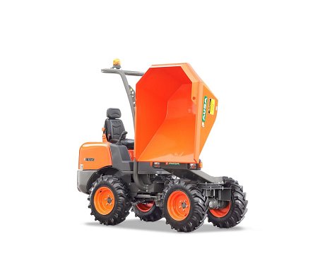 D100AHG je součástí nejmenší řady sklápěčů AUSA s užitečným zatížením 1000 kg a otočným vyklápěním v rozsahu 180 stupňů. Celková šířka stroje činí 1100 mm, což z něj dělá ideální sklápěč pro drobné stavební práce nebo práce v obtížně přístupných oblastech, jako jsou úzké ulice a parky.