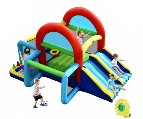 Nafukovací skákací hrací centrum, se skluzavkou a fotbalovou brankou