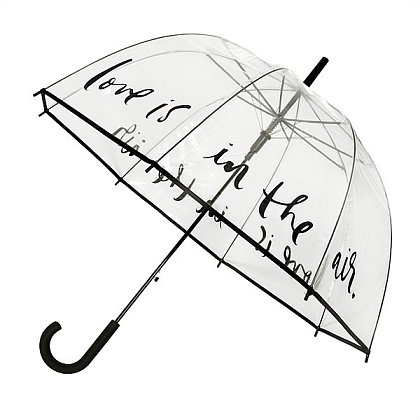 Průhledný deštník s černým lemem - nápis "Love is in the air"