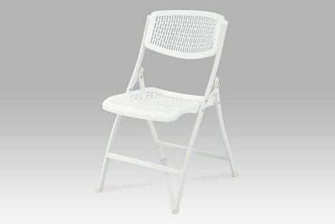 Pěkná a skladná bílá židle z tvrzeného plastu.