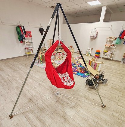 Nonsnost trojnožky je 25 kg, její výška umožňuje zavěšení hačky pro miminko i pro batolata.
