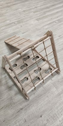 Piklerové trojúhelník s deskou trojstranný je bezpečná dřevěná prolézačka pro miminka, batolata a malé děti. Je v souladu s principy Montessori pedagogiky. Děti se rozvíjí přirozenou cestou skrze svobodu pohybu a objevování. Rozvíjí hrubou motoriku dítěte, fyzickou sílu, jistotu a své schopnosti.