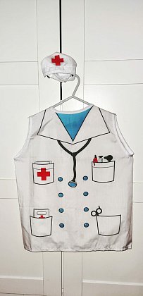 Kostým lékař/doktor: Košile s čelenkou na suchý zip. Výborně se hodí k našemu lékařskému setu (kufříku)