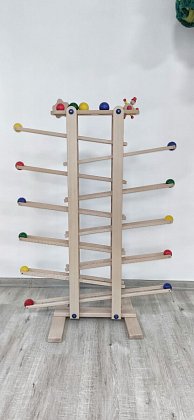 Je 100 cm vysoká, ale náš 1,5 rošťák pouští v pohodě kuličky od půlky.