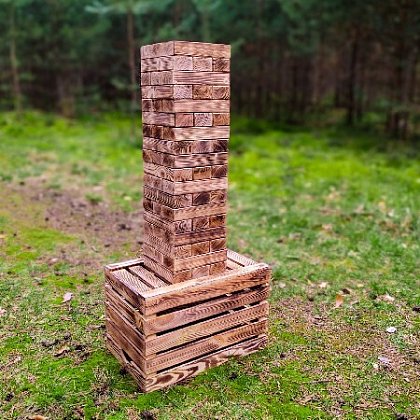 Hra obsahuje: 54 hranolů, výška věže 80cm v základním postavení, při hře až 140cm. (přírodní nebo opálená varianta)