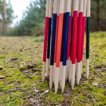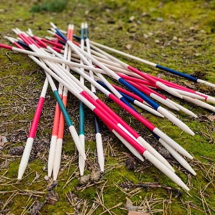 Rozhoďte tyčky a zavzpomínejte na mládí :) Střídejte se ve vytahování tyček tak, aby se žádná nepohnula. Po rozebrání všech tyček vítězí ten, který nasbíral nejvíce bodů.