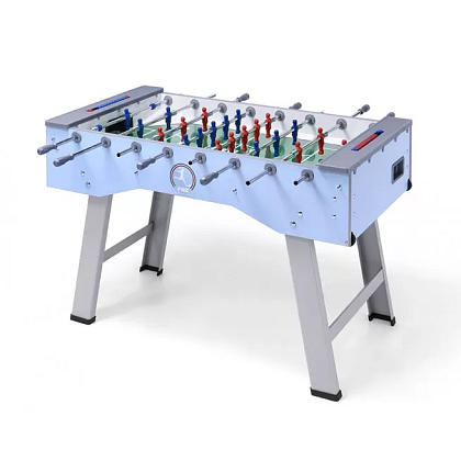 Hrací plocha: profesionální rozměry 114,5 × 70 cm, tvrzené sklo 5 mm. Průchozí tyče z masivní oceli, průměr 16 mm od Italské firmy RETA, výhradního dodavatele komponentů celosvětové ligy ITSF.