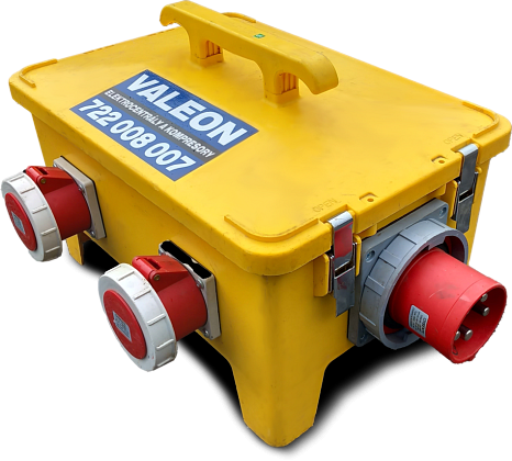 Přenosný rozvaděč vstup 1x125A, 2x63A, 3x32A, koncové chrániče na každou zásuvku samostatně