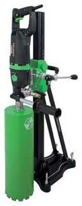 Jádrový vrtací set obsahující jádrovou vrtačku Eibenstock ETN 162/3 a stojan BST 182 V/S. Jednotka je schopna vrtat beton až do průměru 162 mm.