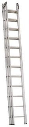 Hliníkový žebřík třídílný - výsuvný, štafle. Lze jej použít jako výsuvný štaflový žebřík, štafle nebo opěrný žebřík. Ručně výsuvný hliníkový žebřík pro domácnost najde uplatnění v domě i na zahradě.